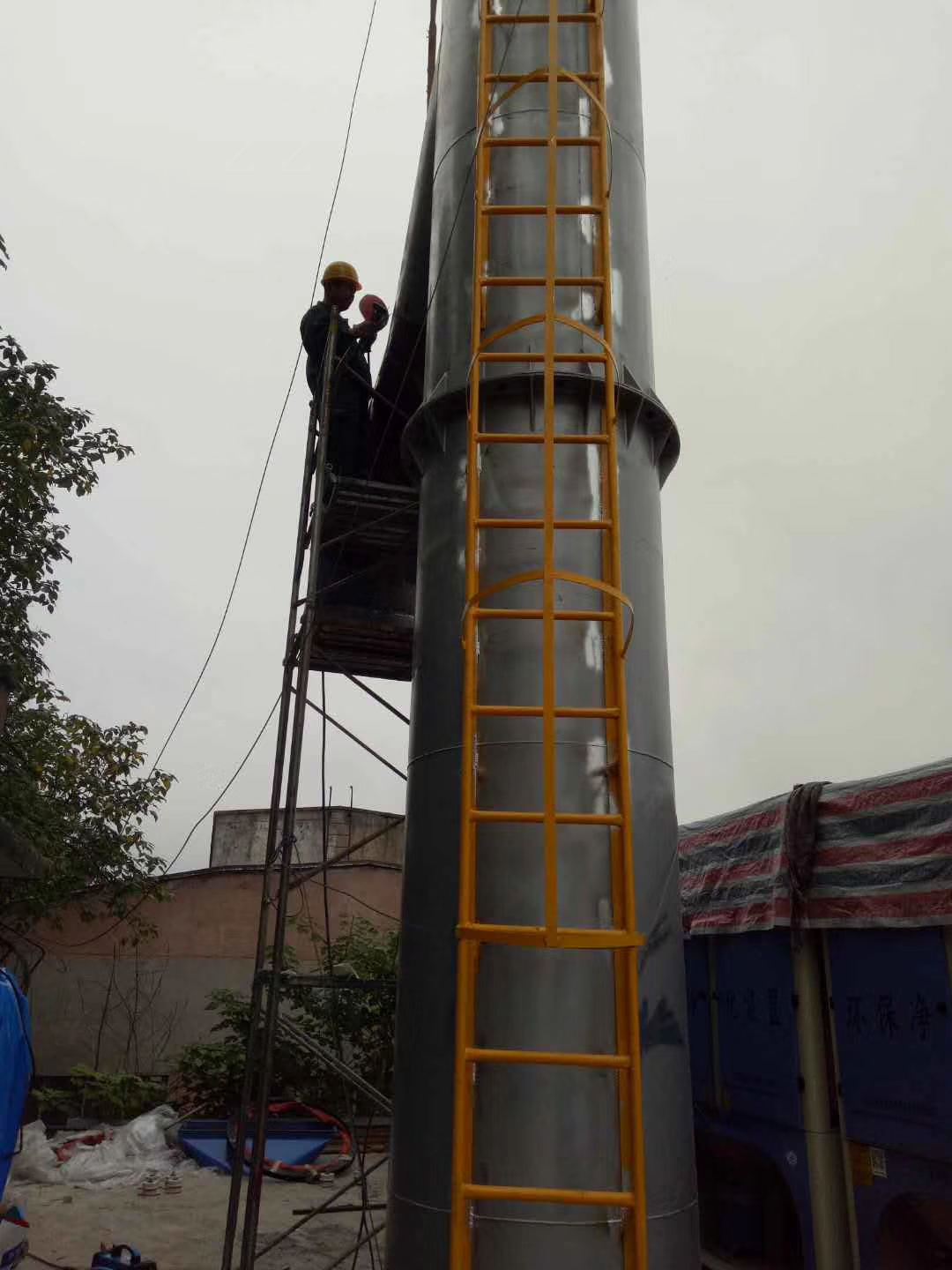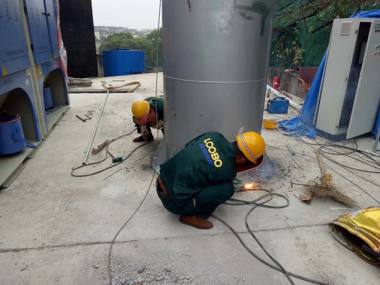落砂房除塵項(xiàng)目施工前期,路博環(huán)保施工人員爭(zhēng)分奪秒,冒雨作業(yè)