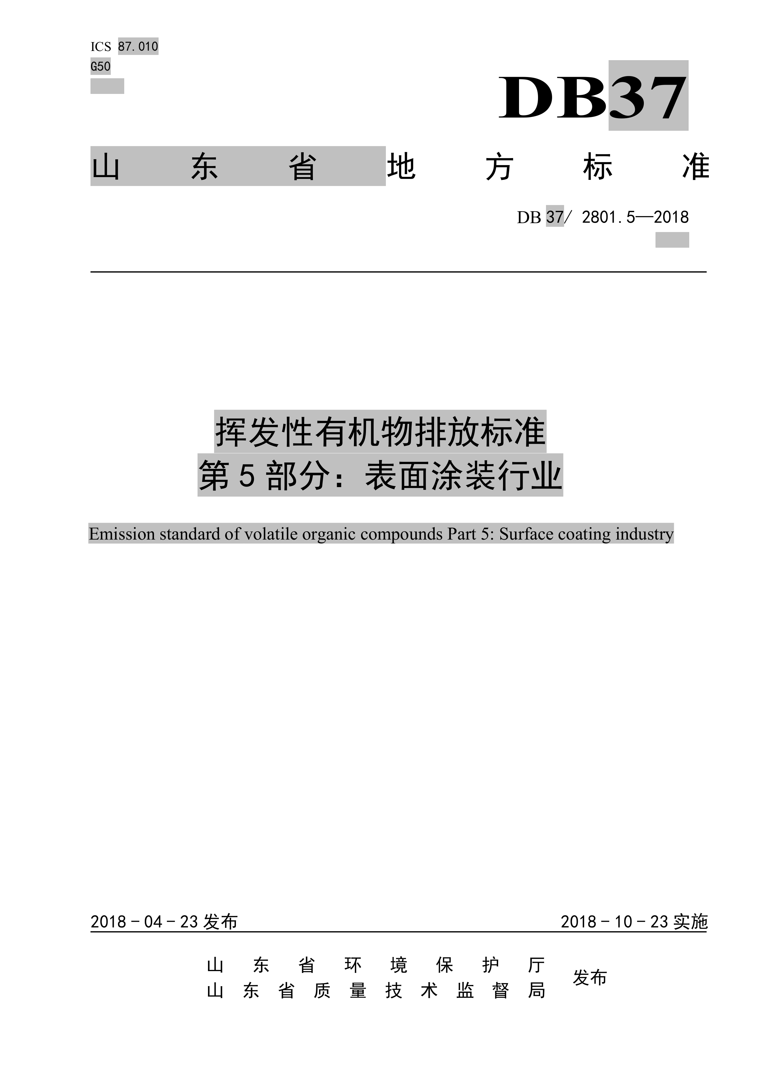 近期,山東省環(huán)保廳和省質(zhì)監(jiān)局聯(lián)合發(fā)布了《揮發(fā)性有機物排放標準 第5部分:表面涂裝行業(yè)》(DB37/ 2801.5-2018),經(jīng)路博環(huán)保整理詳情如下: