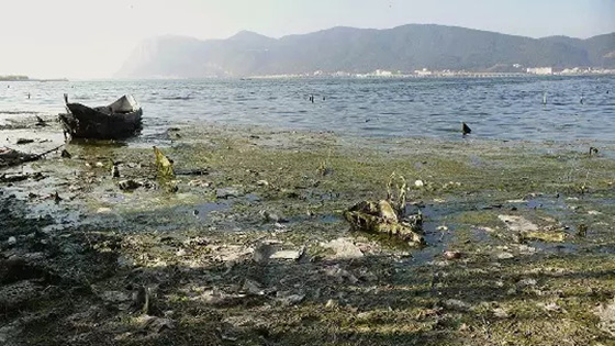 富營(yíng)養(yǎng)化是指因水體中N、P等植物必需的礦質(zhì)元素含量過(guò)多而使水質(zhì)惡化的現(xiàn)象。水體中含有適量的N、P等礦質(zhì)元素,這是藻類植物生長(zhǎng)發(fā)育所必需的。但是,如果這些礦質(zhì)元素大量地進(jìn)入水體,就會(huì)使藻類植物和其他浮游生物大量繁殖。這些生物死亡以后,先被需氧微生物分解,使水體中溶解氧的含量明顯減少。接著,生物遺體又會(huì)被厭氧微生物分解,產(chǎn)生出硫化氫、甲烷等有毒物質(zhì),致使魚(yú)類和其他水生生物大量死亡。發(fā)生富營(yíng)養(yǎng)化的湖泊、海灣等流動(dòng)緩慢的水體,因浮游生物種類的不同而呈現(xiàn)出藍(lán)、紅、褐等顏色。富營(yíng)養(yǎng)化發(fā)生在池塘和湖泊中叫做“水華”,發(fā)生在海水中叫做“赤潮”。工業(yè)廢水、生活污水和農(nóng)田排出的水中含有很多N、P等植物必需的礦質(zhì)元素,這些植物必需的礦質(zhì)元素大量地排到池塘和湖泊中,會(huì)使池塘和湖泊出現(xiàn)富營(yíng)養(yǎng)化現(xiàn)象。池塘和湖泊的富營(yíng)養(yǎng)化不僅影響水產(chǎn)養(yǎng)殖業(yè),而且會(huì)使水中含有亞硝酸鹽等致癌物質(zhì),嚴(yán)重地影響人畜的安全飲水。