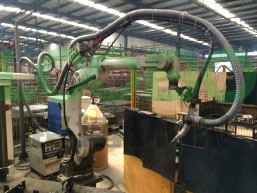 隨著先進制造技術(shù)的發(fā)展,實現(xiàn)焊接產(chǎn)品制作的自動化、柔性化和智能化已成為必然趨勢。目前,采用機器人焊接已成為焊接自動化技術(shù)現(xiàn)代化的主要標志。焊接機器人由于具有通用性強、工作可靠的優(yōu)點,受到了人們越來越多的重視。由于焊接機器人焊槍工作路徑為編程控制,根據(jù)工件不同其焊槍工作路徑不固定,且工作時焊槍行走跨度較大,使得焊接機器人的焊煙治理較為麻煩。